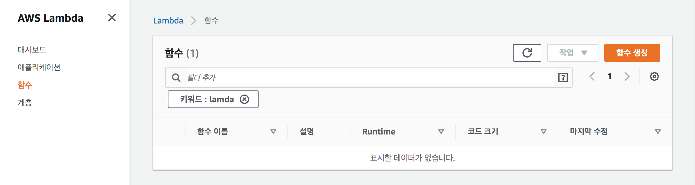 AWS Lambda Page로 들어갑니다.