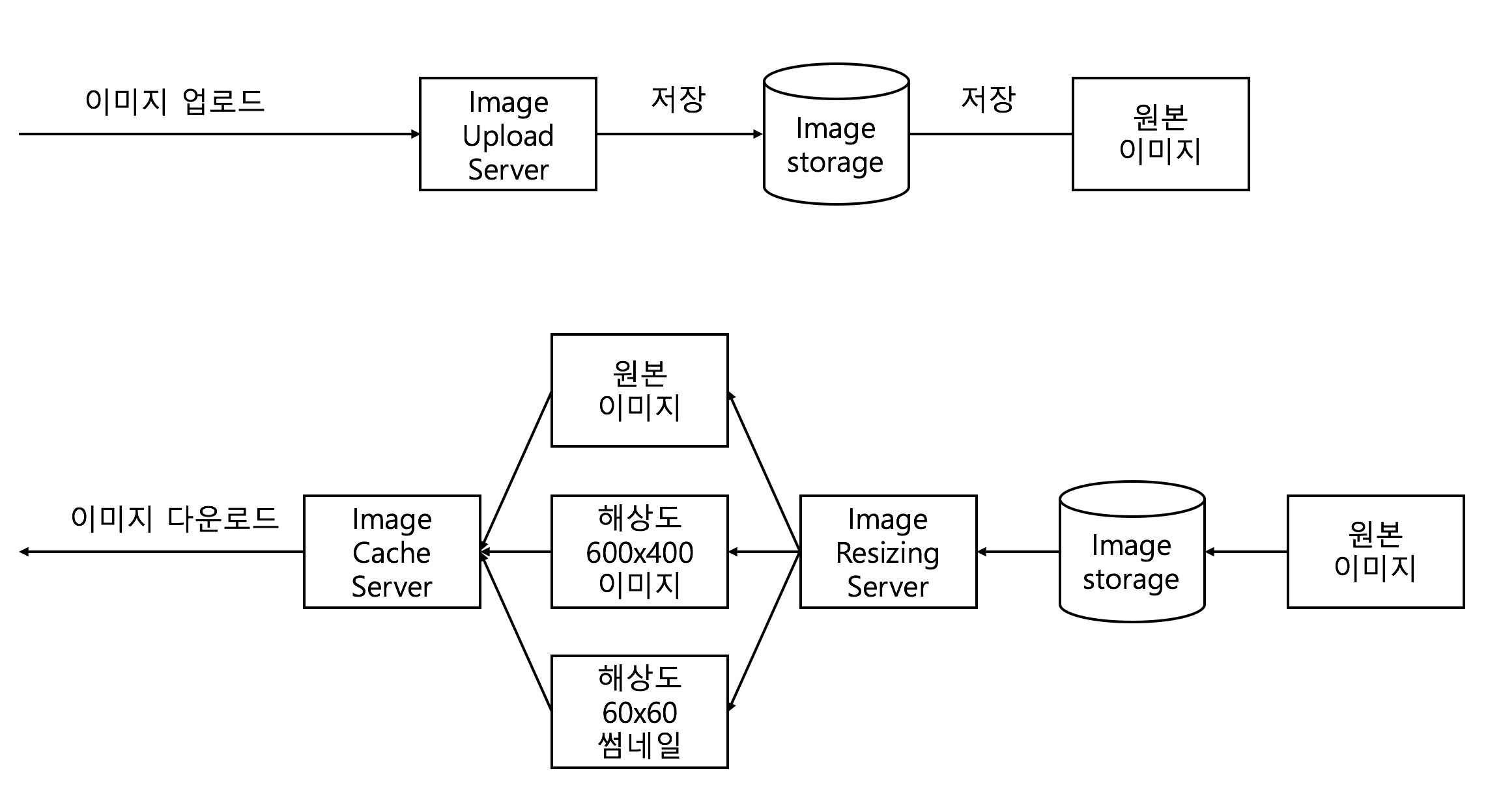 - 이미지 리사이징 서버 : 원본의 이미지를 이미지 이미지 스토리지에서 가져와서 리사이징한다.