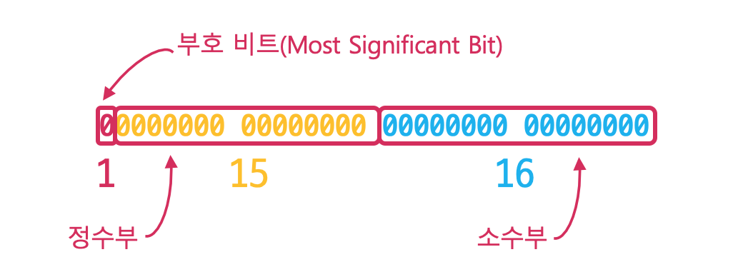 정수부는 정수를 표현하는 비트에서 부호비트를 제외한 나머지 비트를 정수부라고 하며 정수의 값을 표현하기 위한 비트로, 2진수로 구성되어있습니다