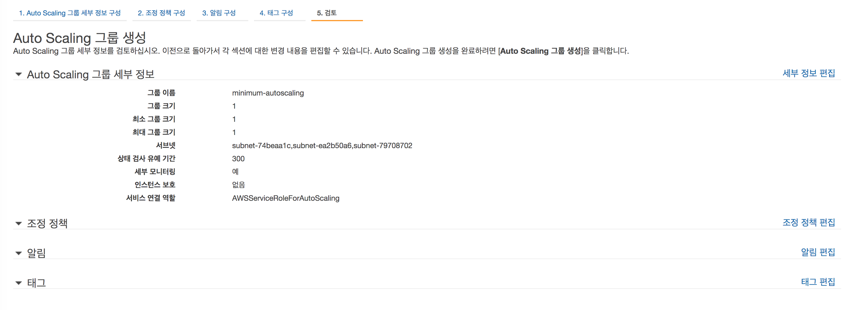 1) 미리 만들어진 AMI와 Auto Scaling Group 시작구성을 통해, 새로운 Auto Scaling Group을 만든다.