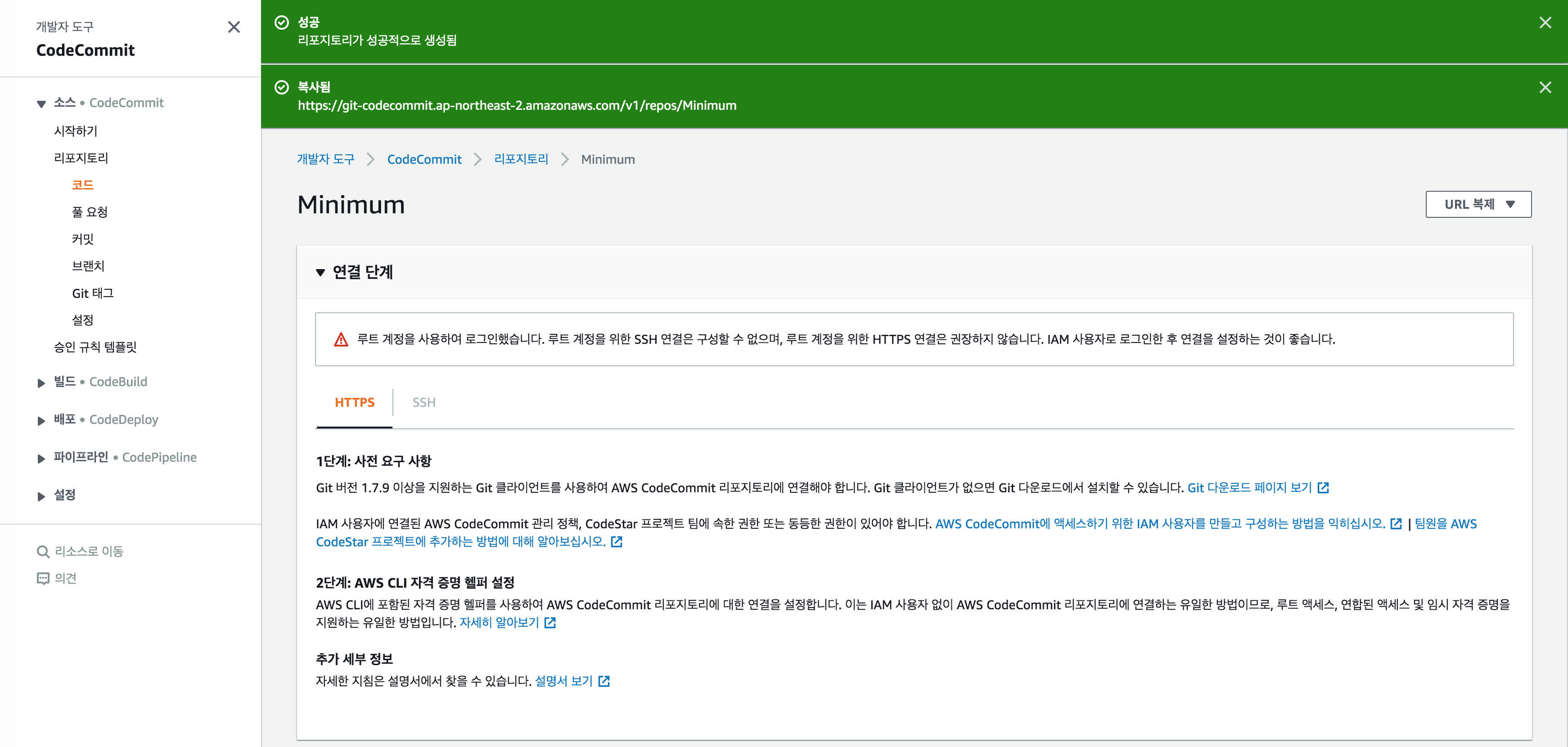 1. 소스코드를 CodeCommit에 올리면 CodePipeline은 감지한다.
