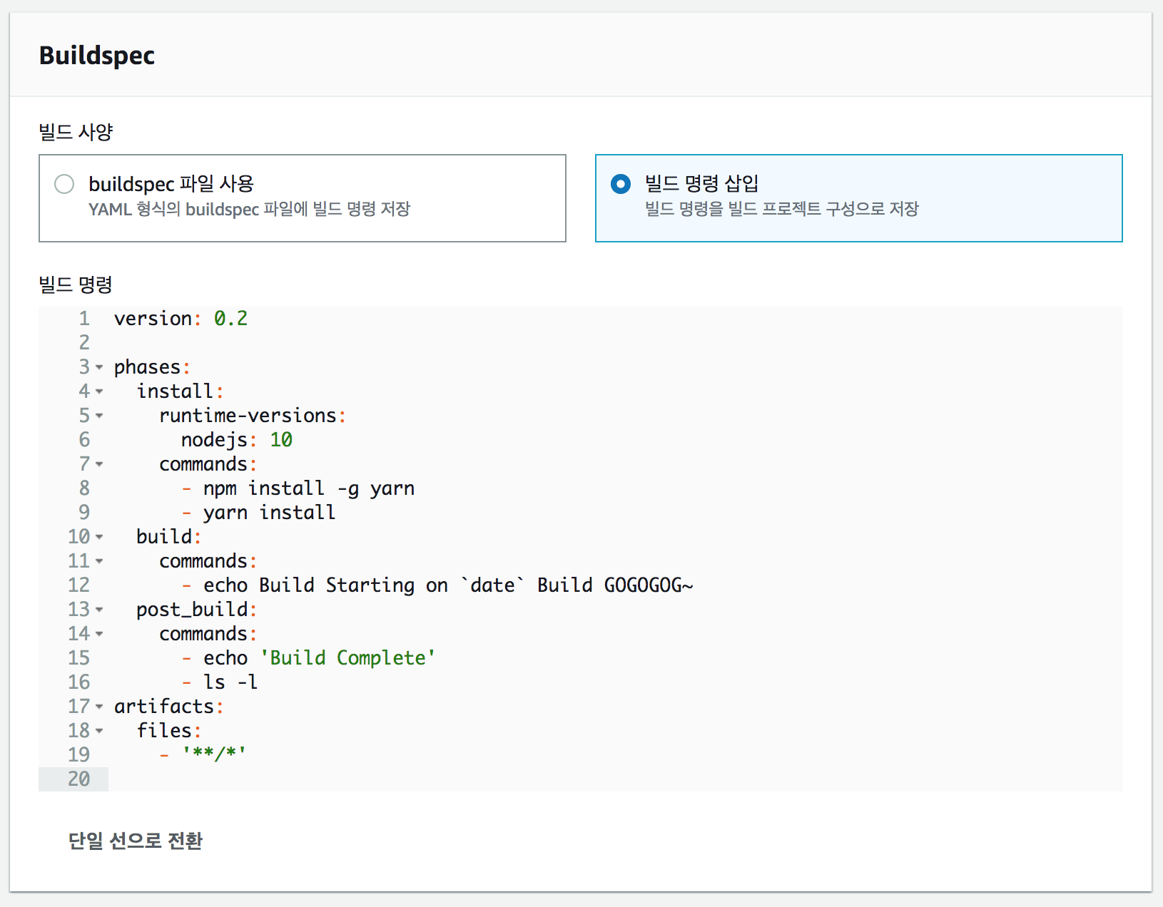 4. 빌드 또는 테스트 절차가 완료되면 다시 빌드된 결과물을 압축 후, S3에 아티팩트로 임시저장한다.