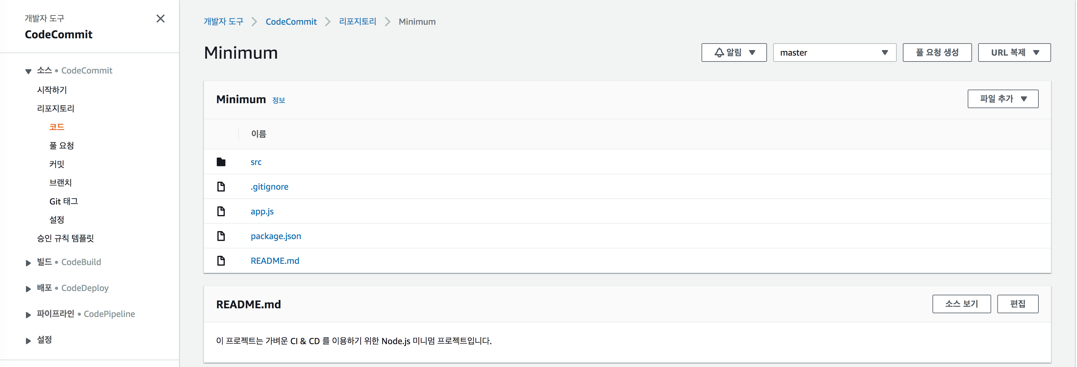 AWS를 이용한 간략 지속적 통합 예제, 무중단 배포 자동화 CI & CD, CodeBuild, CodeDeploy, CodePipeline